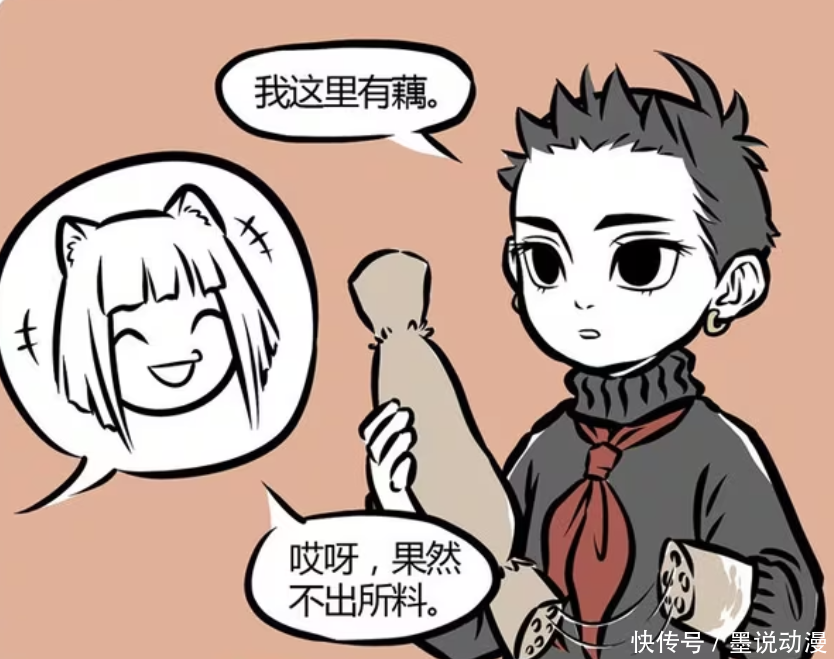 哪吒默示我方带来了莲藕,不外更确凿的说即是将手臂卸下来。哪吒的体格本即是莲藕作念成,领有无穷再生的才智。哪吒平素作念饭,也会这样干。关于九月来说,哪吒这个操作,那是在预思之中。