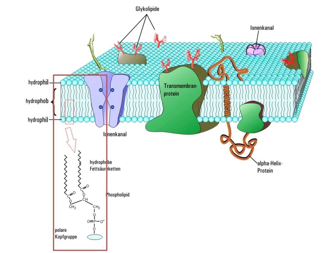 图片上头为细胞膜,下方为甘油磷脂。后者是细胞膜的主要组成要素,其容易因为超氧化物而氧化。图片起原于 Opossum58/维基百科