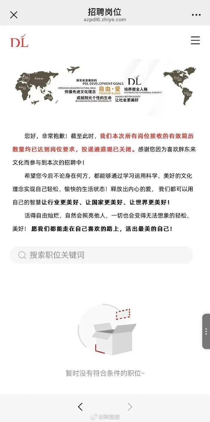 10点45分,招聘页面领略,胖东来通盘岗亭袭取的灵验简历数目均已达到岗亭条目,送达通谈现已关闭。