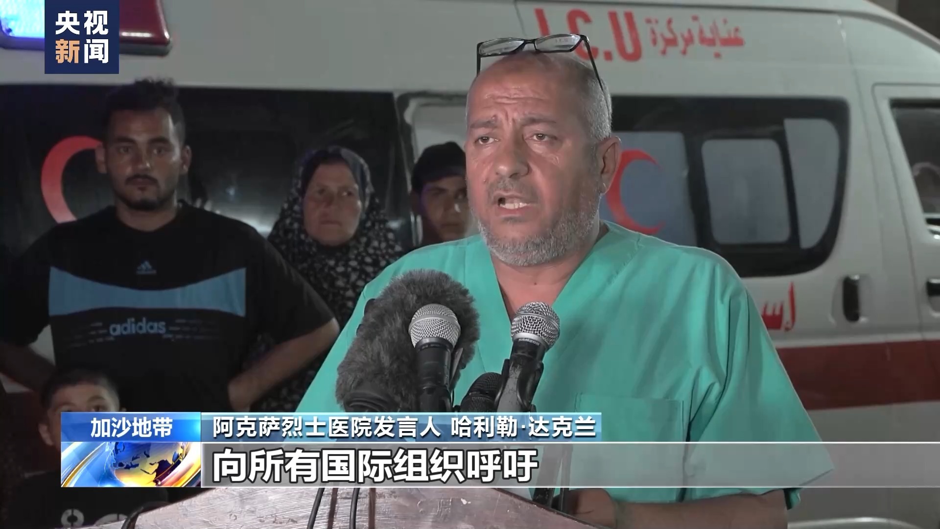 阿克萨义士病院发言东说念主 哈利勒·达克兰:咱们向国外社会,向所有国外组织敕令,阿克萨义士病院是加沙地带中部惟一提供医疗劳动的病院,现在它需要向100多万东说念主提供医疗劳动,而咱们已无力汲取更多的伤患,病院科室的伤员和患者数目已超出普通临床容量三倍以上。