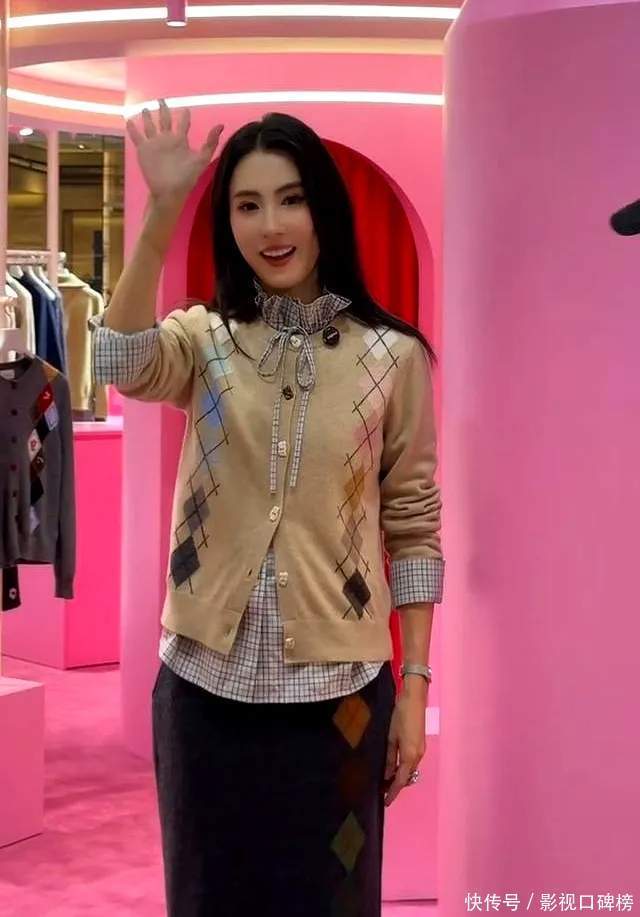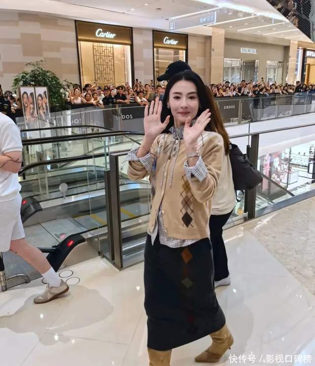 9月27日,有网友晒出在重庆万象城偶遇张柏芝。入秋了,张柏芝一稔一袭秋装,外面是浅棕色小开衫内部一稔格纹衬衫,下搭深色半身裙,脚上踩着长筒靴。她化着良好的妆容,气质可以。