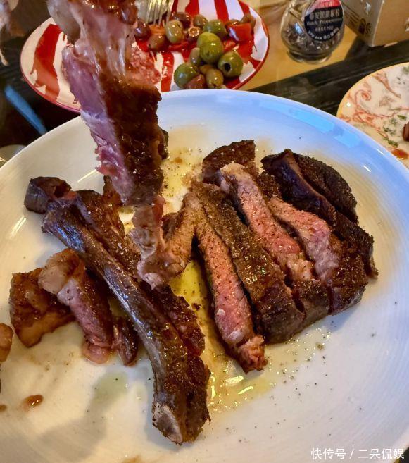 王昀佳的厨艺确凿可以,牛排煎得色香味俱全,看起来充满劝诱力。