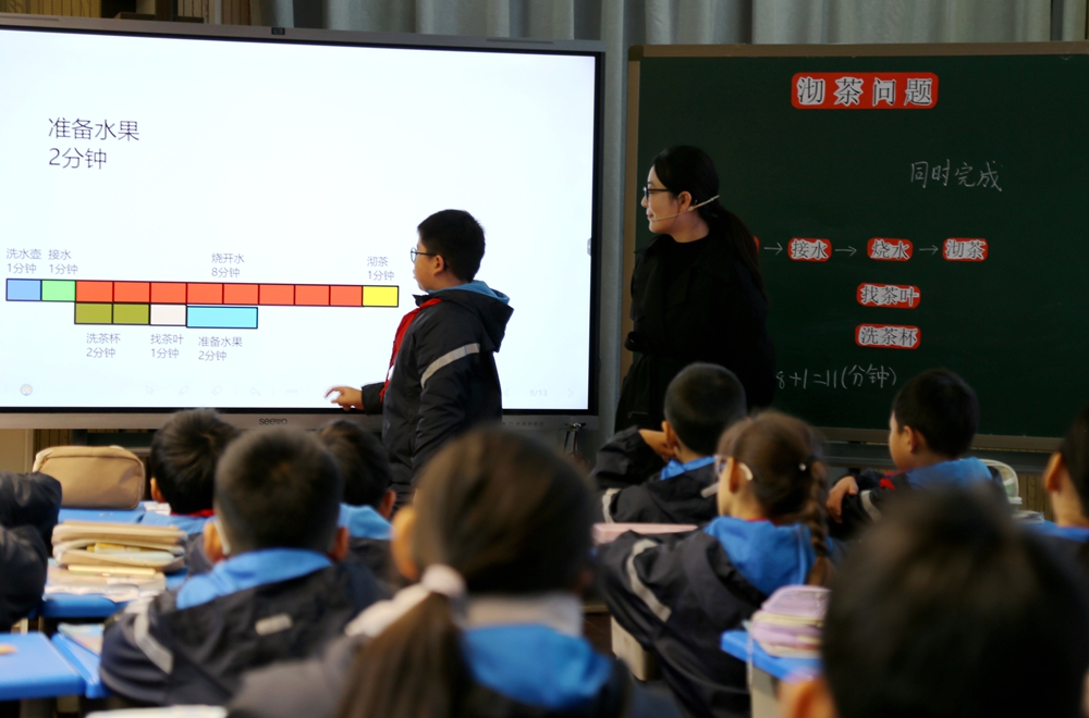课堂上,郭江华淳厚精巧地愚弄多媒体课件,创设了濒临学生生计的“泡茶”情境,有用引发学生的学习深嗜。指导学生诊治已有的生计教养,通过动手操作、小组互助、经过罗列等多种感官参与的时势,深切探究怎样合理安排本领。郭淳厚将综合的数学看法“先后任务”与“并行任务”转机为学生可视、可触、可念念的具象化行径,让学生在亲自实行中不仅认知了“优化”的数学念念想,更掌捏了将这一念念想应用于处分履行问题的能力,好意思满讲明了“作念中学”的真理。