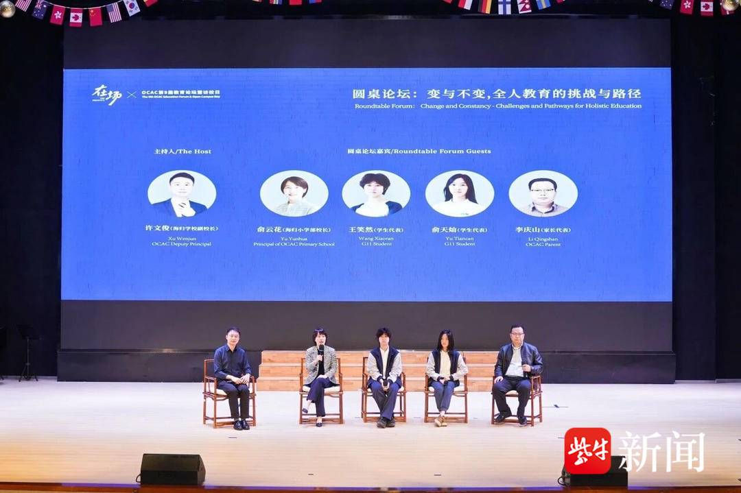 在海归学校副校长许文俊的主捏下,由海归学校小学部校长俞云花、海归学校G11在读学生王笑然与俞天灿,以及家长代表李庆山构成的圆桌论坛以“变与不变,全东谈主训诲的挑战与旅途”为主题,伸开了泛论。